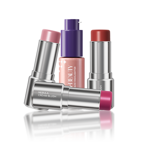 A glow-giving duo that adapts to your mood. Choose your Nebula Cream Blush - Helix Berry for a playful berry warmth, Carina Crimson for a soft romantic rose, or Lagoon Pink for a fresh, youthful glow - while the luminous First Light Highlighter in Lunar Glow remains your perfect companion. Together, they balance warmth and radiance, depth and dimension for an effortlessly lit-from-within glow.