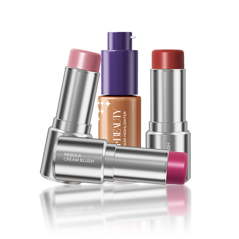 The Nebula Blush & Golden Dawn Glow Duo is designed to bring out your softest, most radiant glow. Nebula Cream Blush in Lagoon Pink delivers a delicate, airy flush, Helix Berry adds a plush, radiant berry glow, and Carina Crimson brings a warm, sunlit crimson that softly lifts your cheeks, while First Light Highlighter in Golden Dawn bathes skin in sunlit warmth. Wear them together for a luminous, fresh-faced look that shines from day to night
