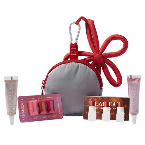 A complete mini makeup kit in a bag-charm pouch.