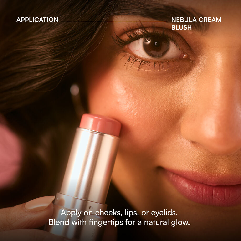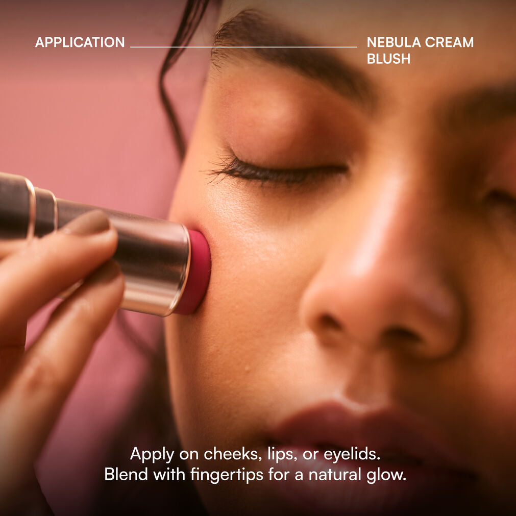 Inspired by the shifting hues of distant nebulae, it delivers a soft, cosmic flush that feels like it was always yours - natural, seamless, and unmistakably you. With every swipe, it adds a healthy, vibrant glow that brightens your face and lifts your mood, making you look just a little more alive, even on your most minimal days.