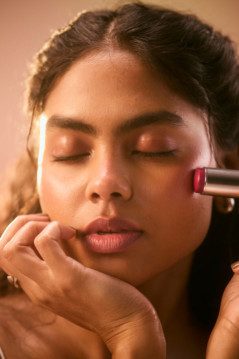 Both — depending on what You need! One swipe gives a sheer, skin-melt glow. Tap in more for a statement blush moment. It’s sheer-to-bold, with a dewy finish that looks like skin at golden hour.