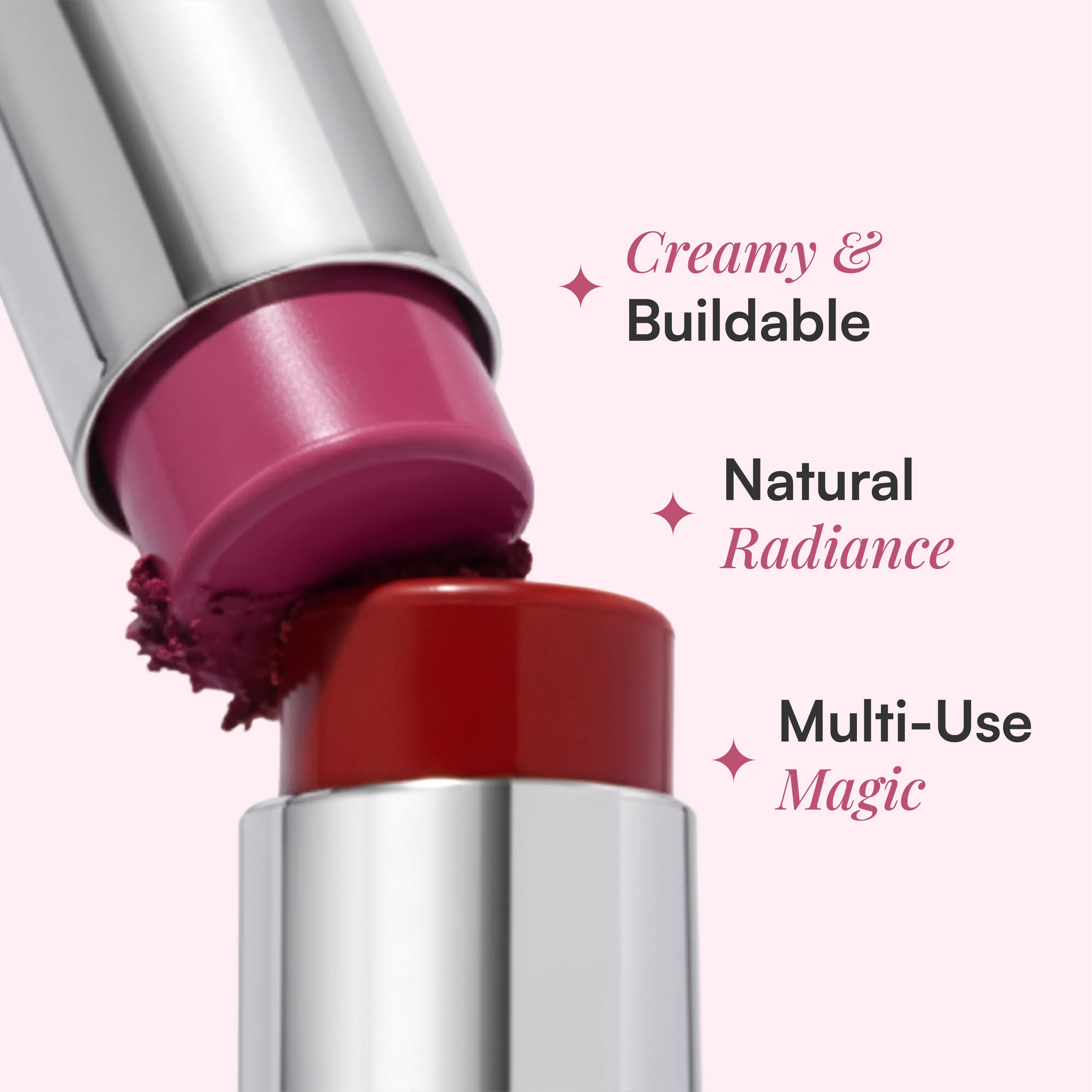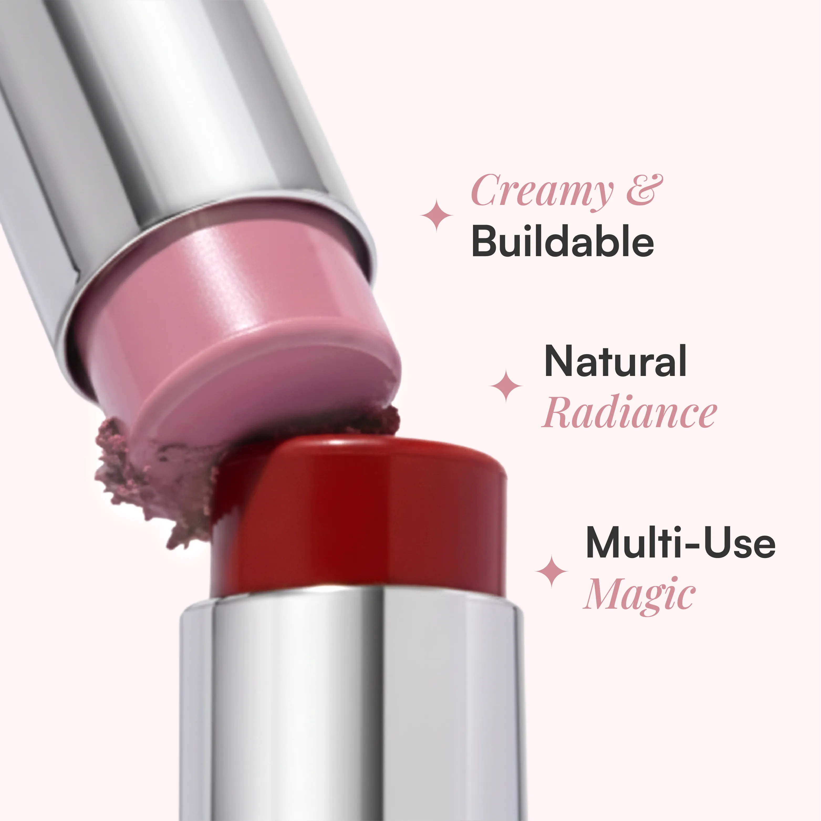 Both — depending on what You need! One swipe gives a sheer, skin-melt glow. Tap in more for a statement blush moment. It’s sheer-to-bold, with a dewy finish that looks like skin at golden hour.